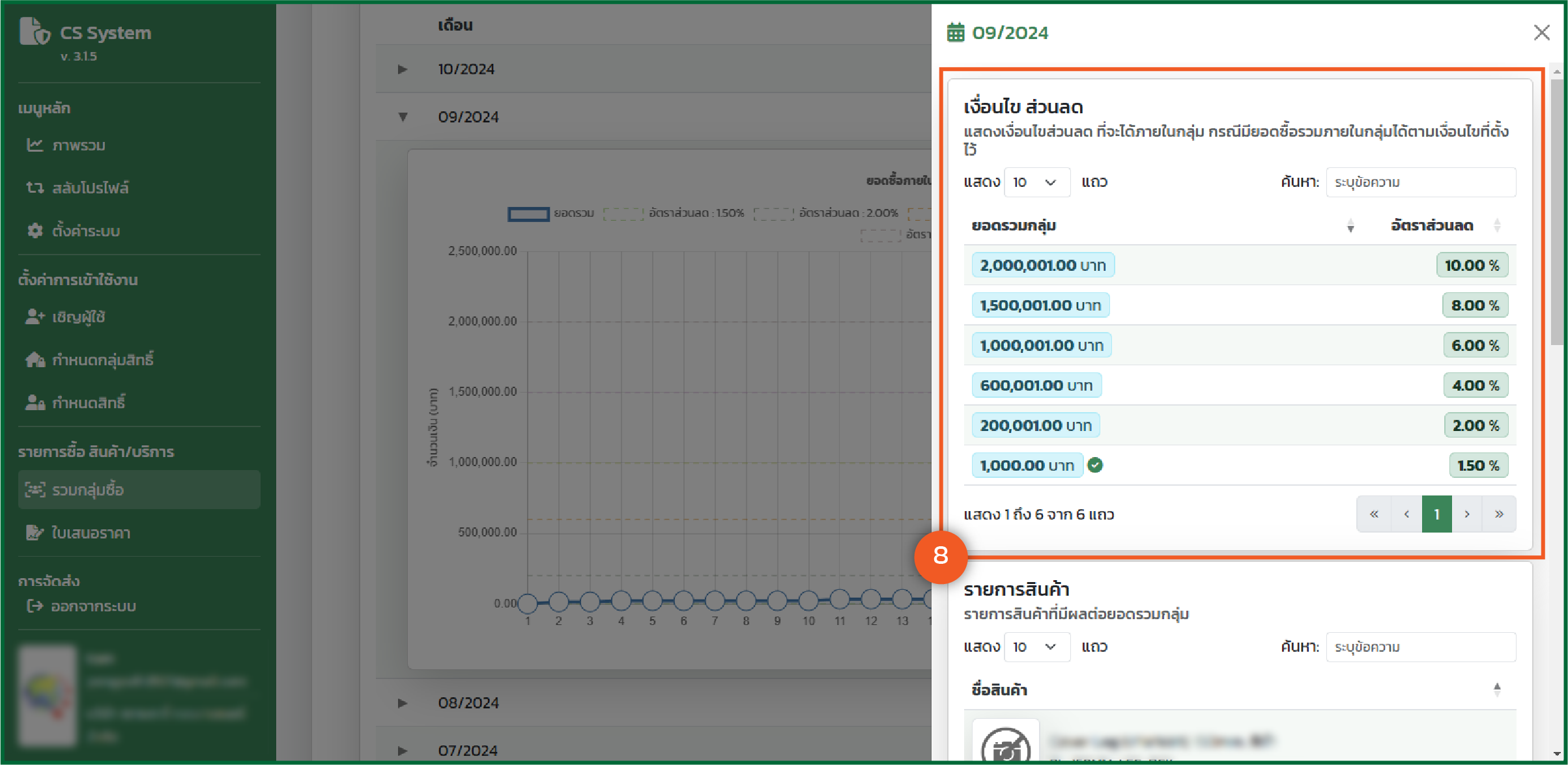 - และมีเส้นอัตราส่วนลดแสดง เพื่อให้ทราบว่า ณ. วันนั้นๆ สามารถสะสมยอดขาย และได้ส่วนลดที่เท่าไหร่