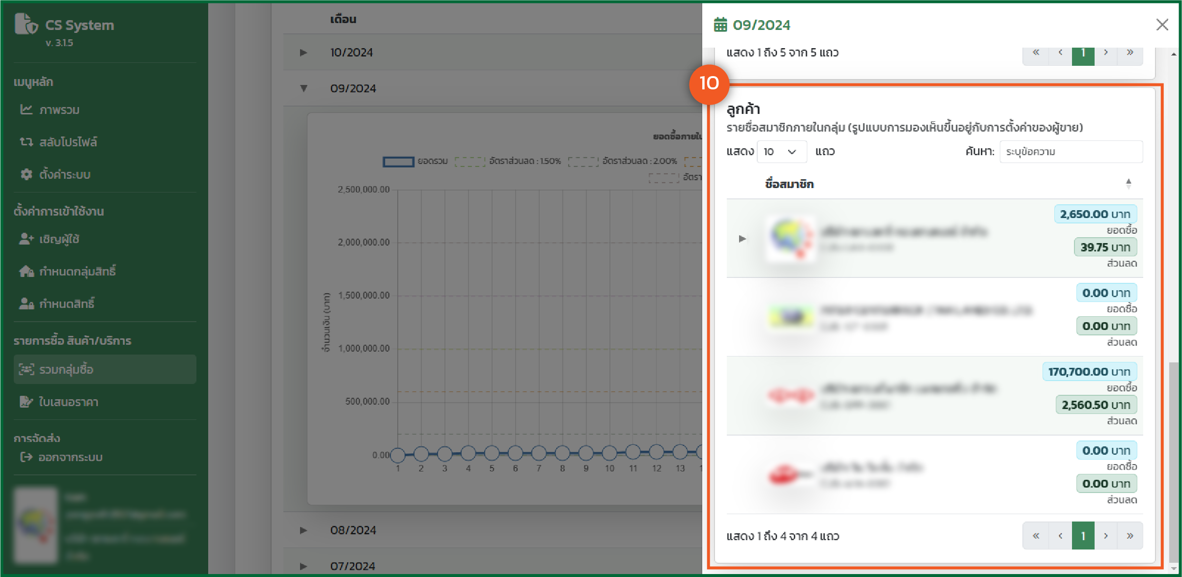 - แสดงรายชื่อลูกค้าที่อยู่ในกลุ่มนี้ โดยชื่อบนสุดจะเป็นชื่อโปรไฟล์ของท่านเสมอ *** ส่วนรายชื่อสมาชิกที่อยู่ในกลุ่ม ยอดขาย และส่วนลดที่ได้ ผู้ขายจะเป็นผู้กำหนดว่าจะให้ท่านเห็นข้อมูลส่วนใดบ้าง