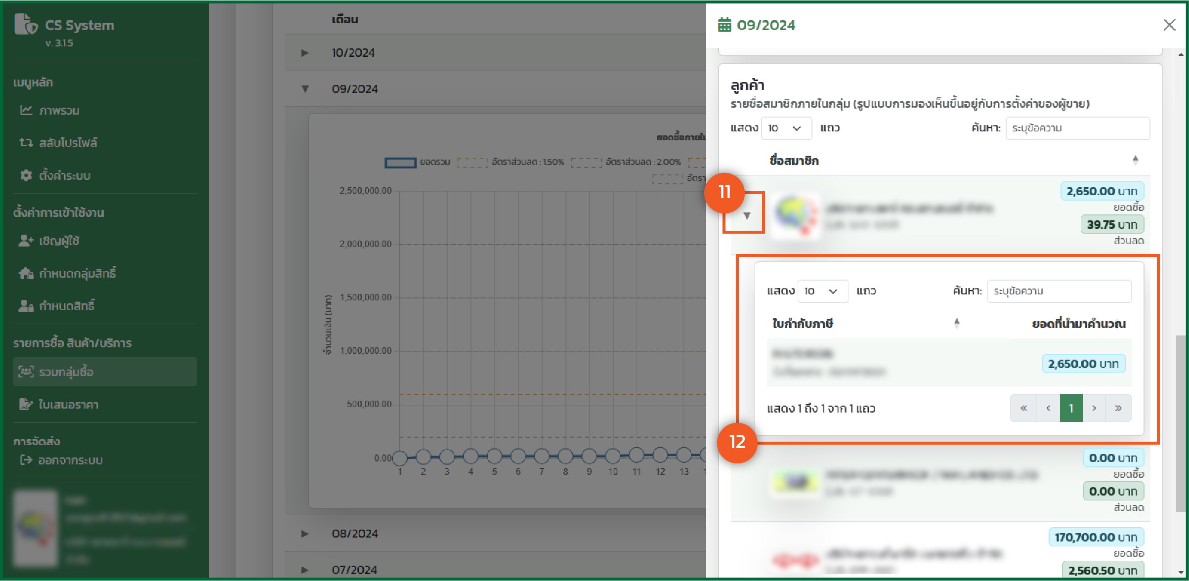 - แสดงรายละเอียด "ใบกำกับภาษี" ที่เกิดขึ้นภายใน "เดือนนี้/กลุ่มนี้"