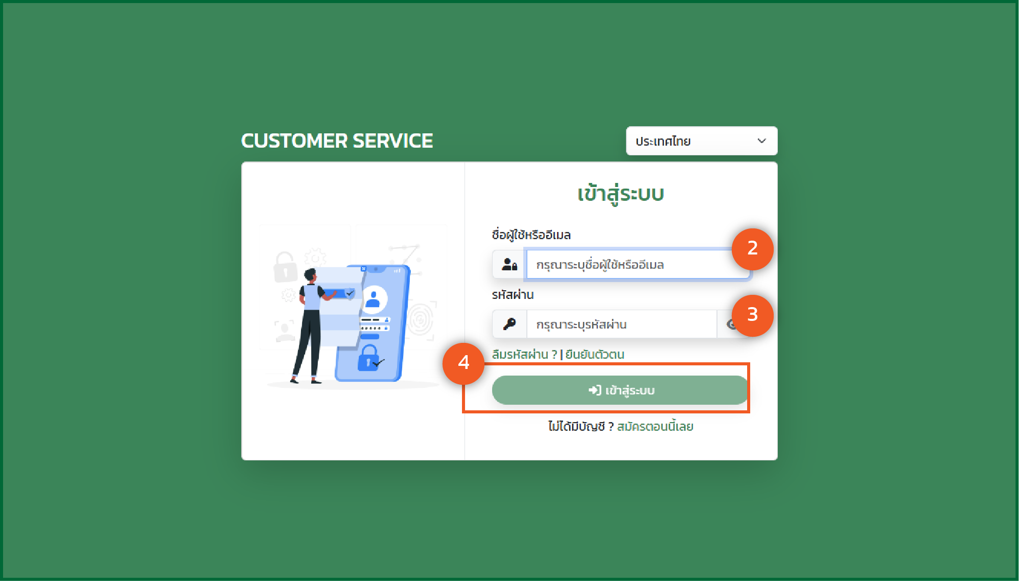 - ระบุ "ชื่อผู้ใช้หรืออีเมล"
