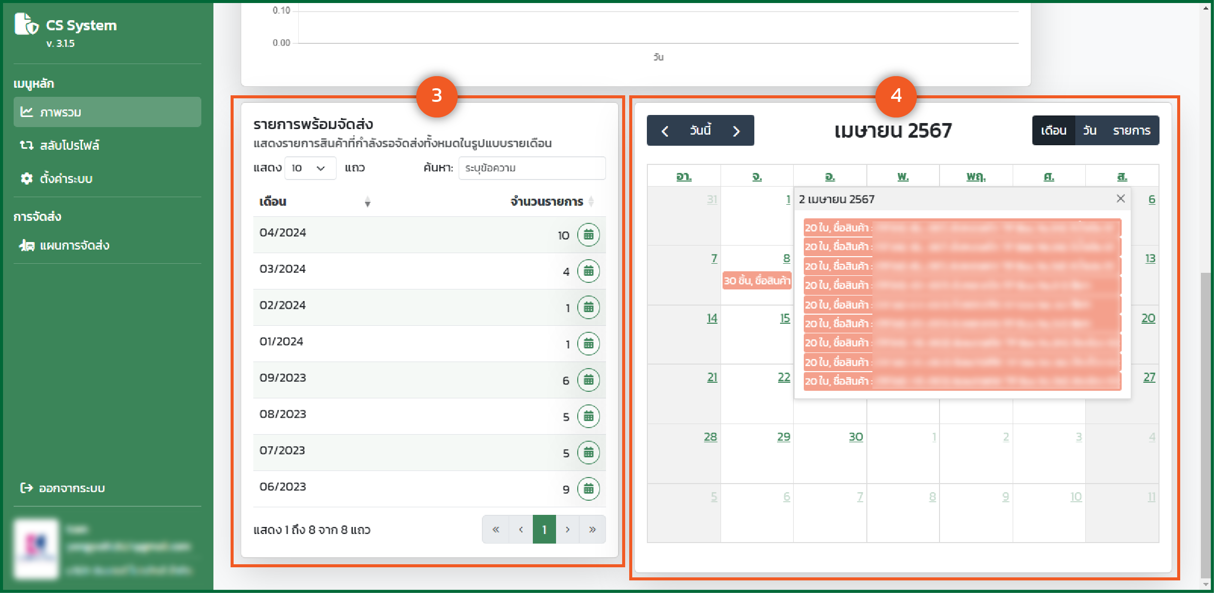 - แสดงรายการสินค้า "พร้อมจัดส่ง" ในรูปแบบรายเดือน *** เมื่อทำการคลิกปุ่มรูปปฏิทิน จะแสดงข้อมูลในรูปแบบปฏิทินทางด้านขวา
