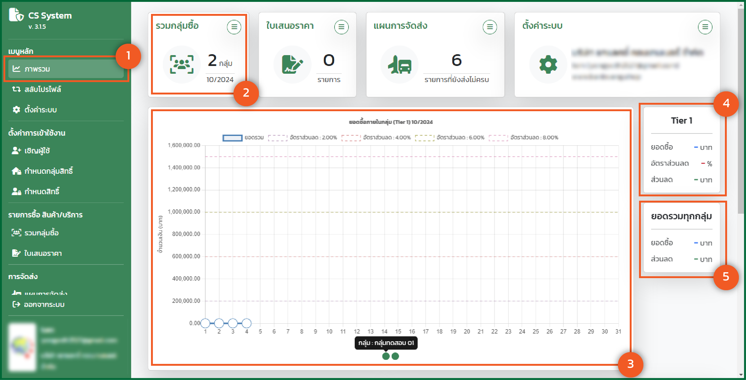 - แสดง ณ. ยอดปัจจุบัน โดยกราฟจะแสดงตามยอดที่รวมกลุ่มนั้นๆ ได้ และแสดงส่วนลดที่ได้ ณ. ปัจจุบัน