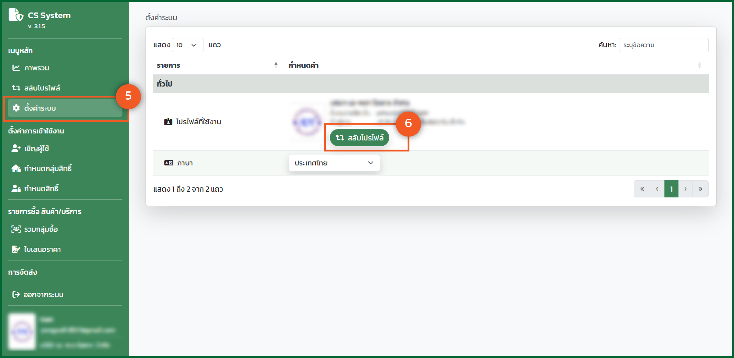 เปลี่ยนโปรไฟล์ที่เข้าใช้ระบบ