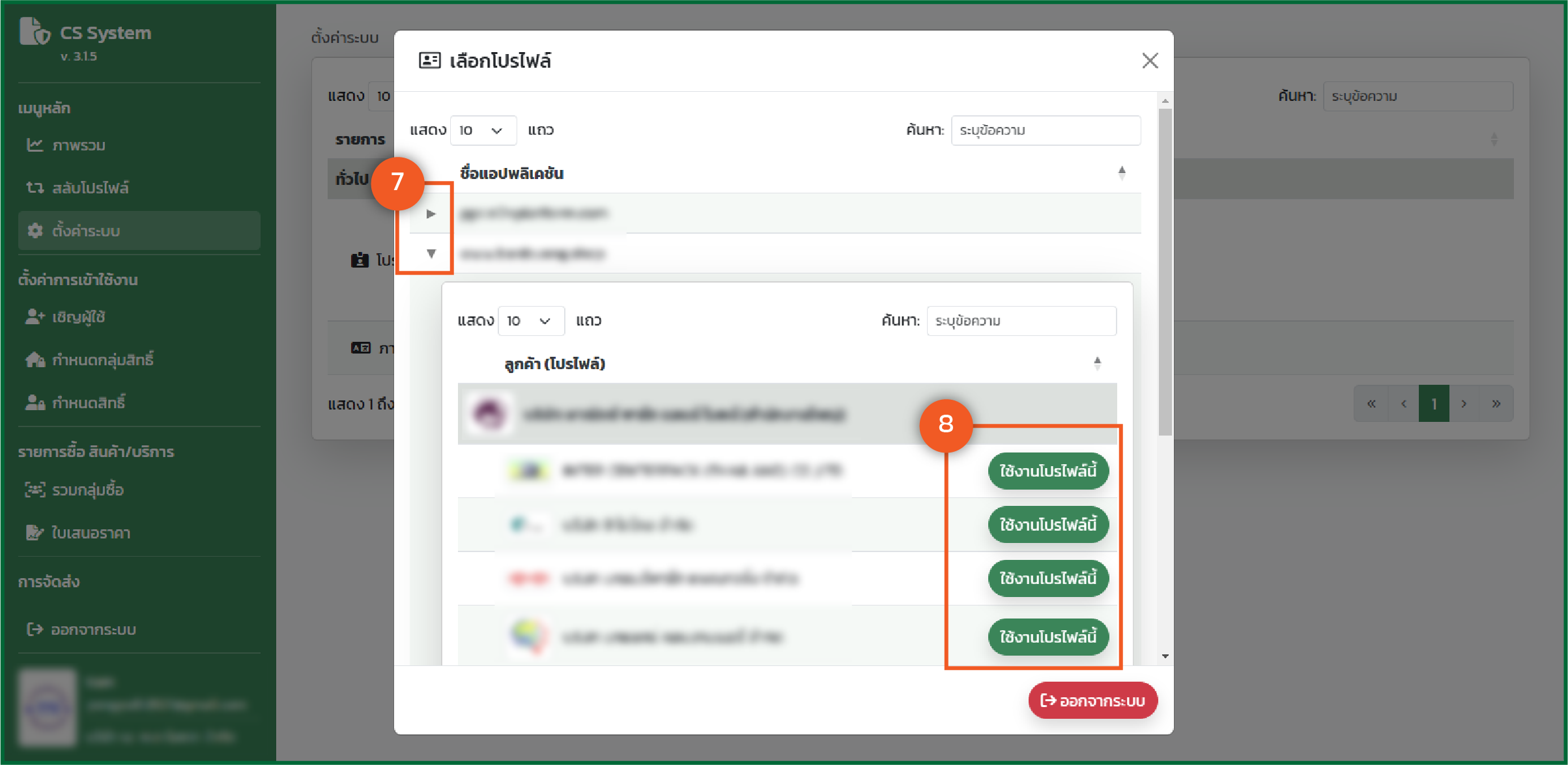 - คลิกเลือก "ใช้งานโปรไฟล์นี้" ที่รายการโปรไฟล์ที่ต้องการ