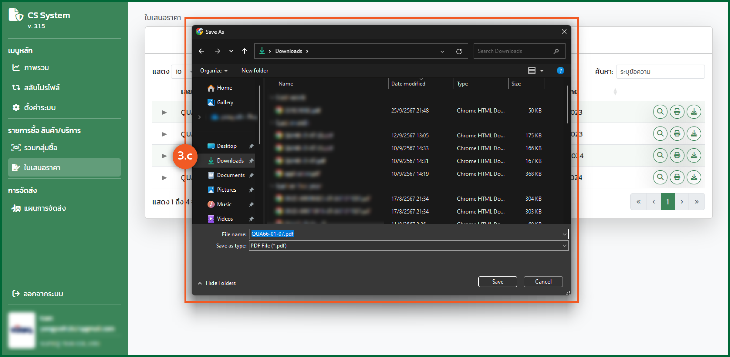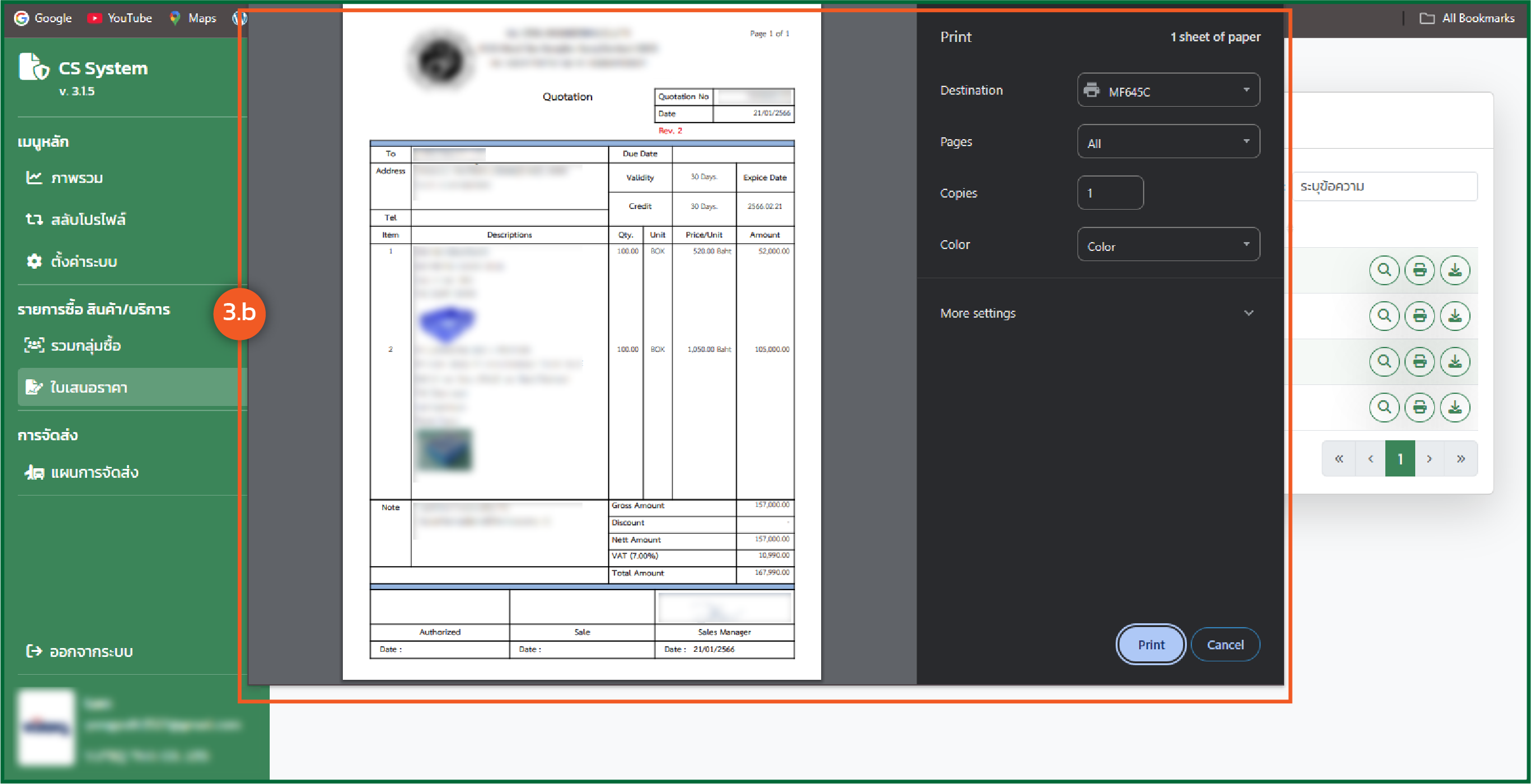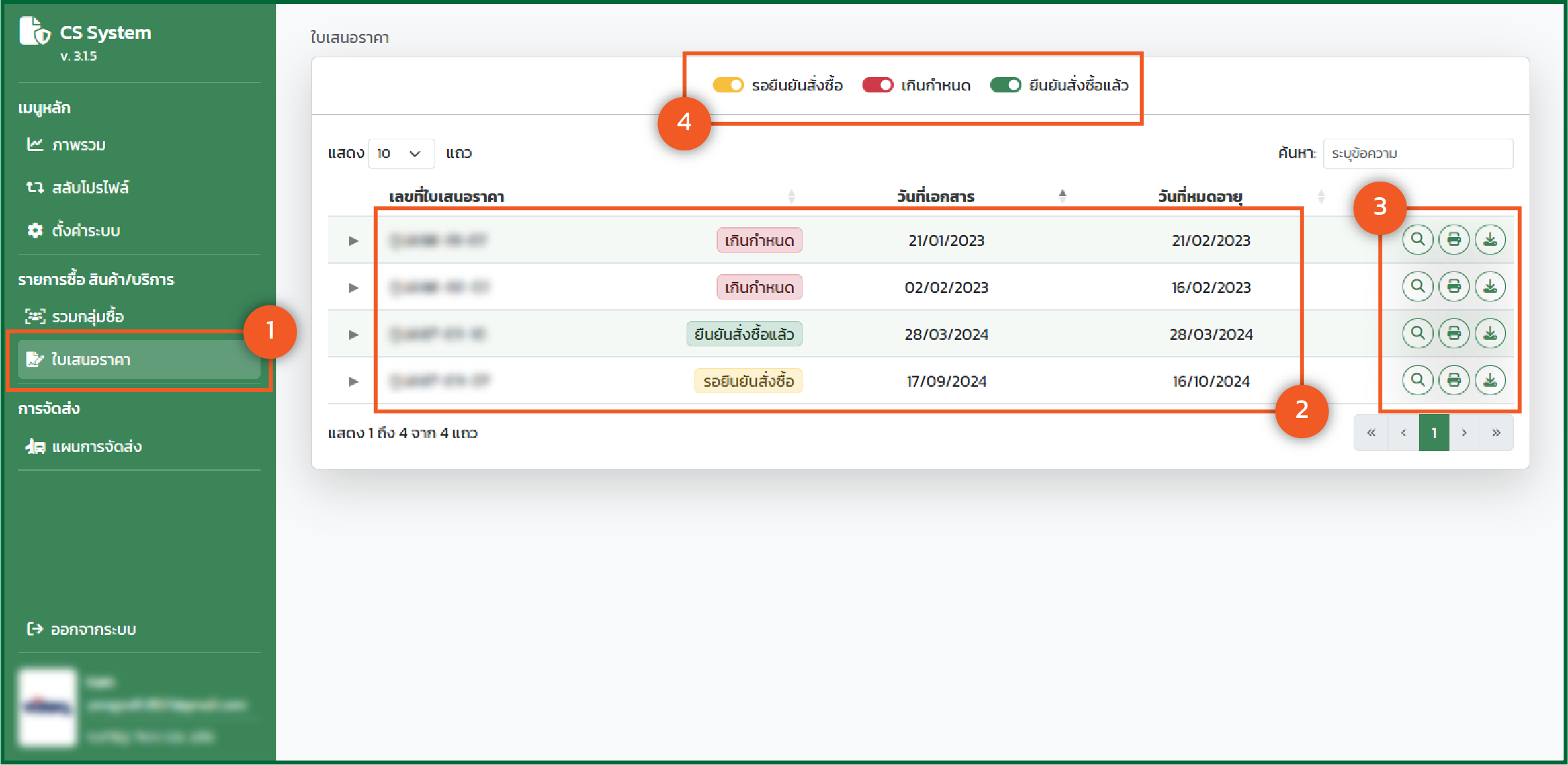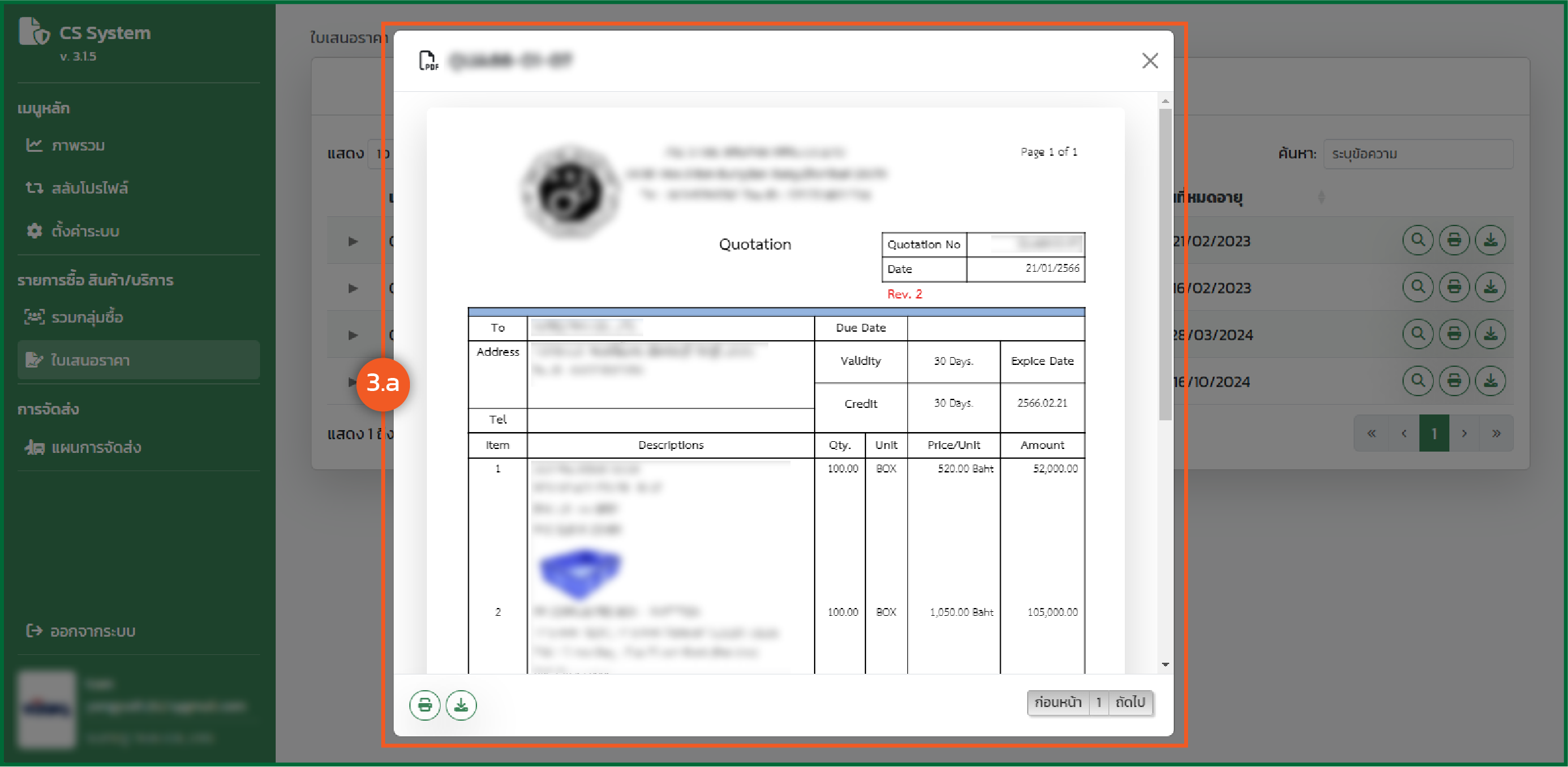 - ระบบจะแสดงรายการใบเสนอราคา จะมีรายละเอียดดังนี้