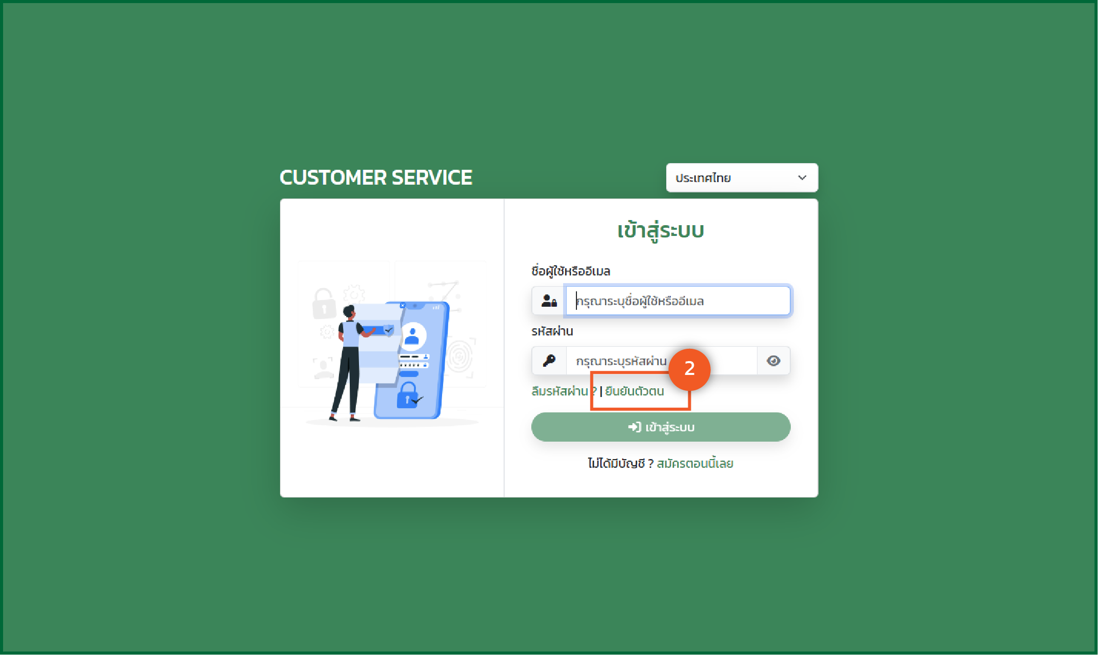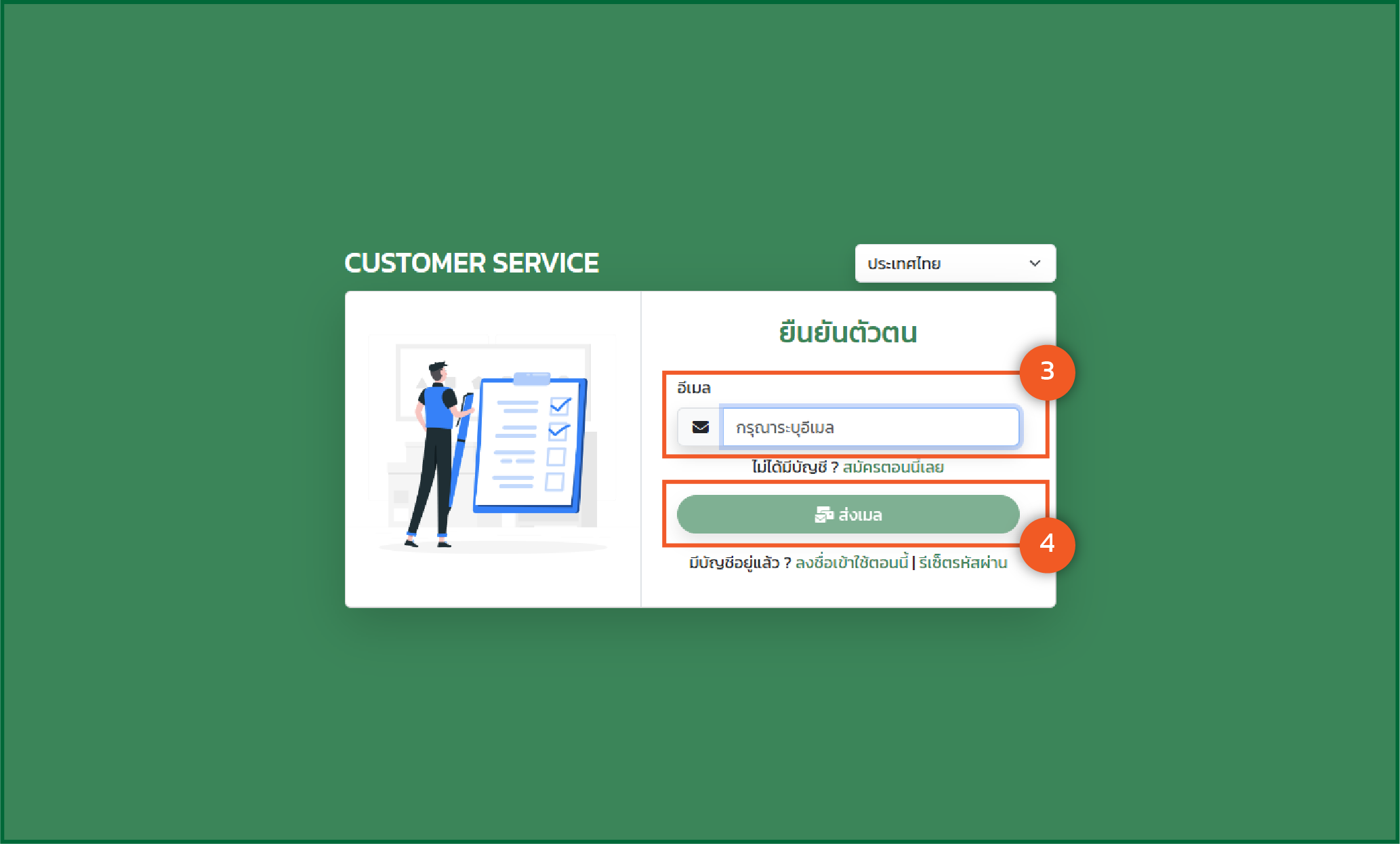 - ระบุอีเมลที่ต้องการขอยืนยันตัวตน