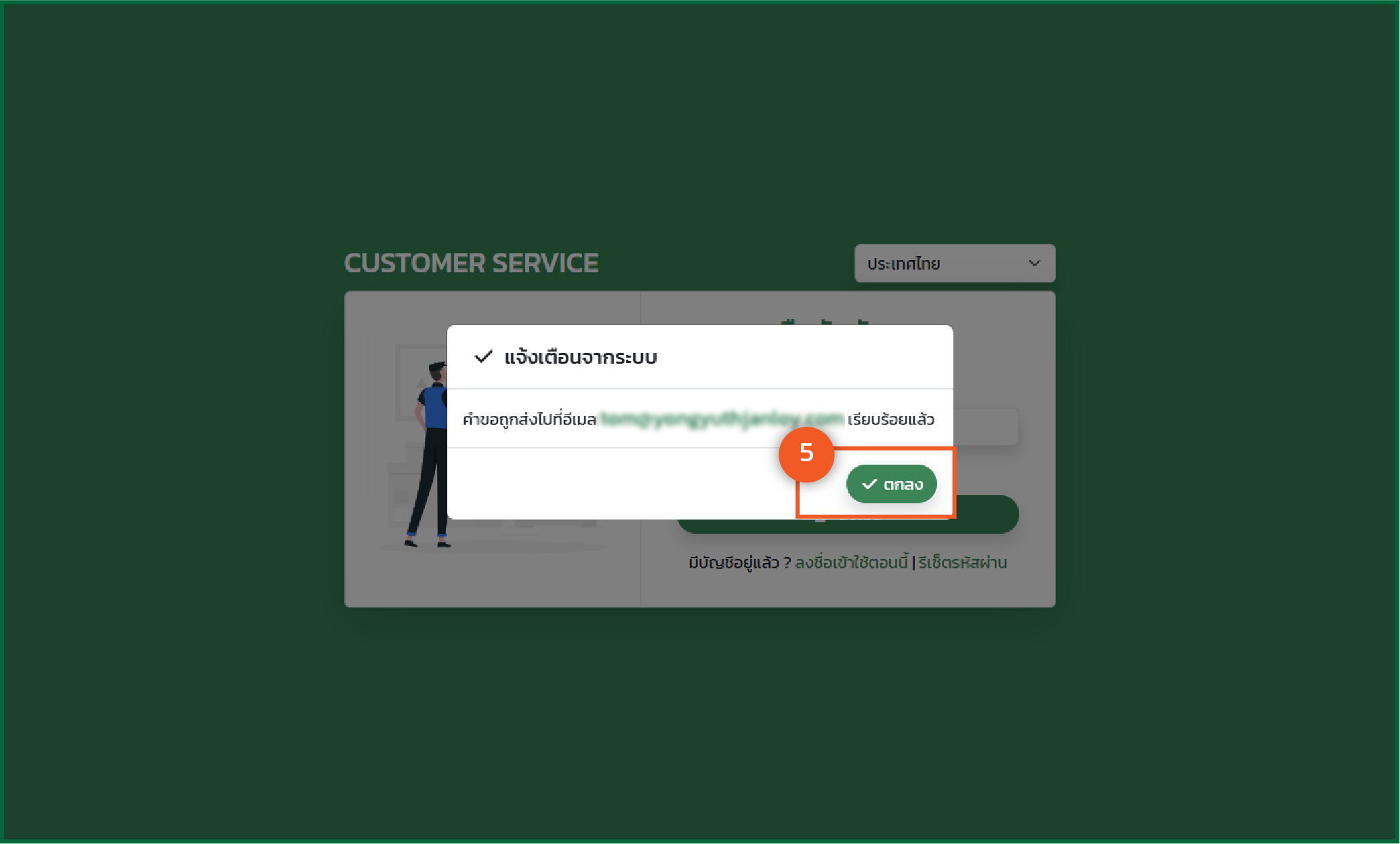 - รอจนระบบแจ้งเตือนว่ามีการส่งคำขอไปเรียบร้อยแล้ว และคลิกปุ่ม "ตกลง"